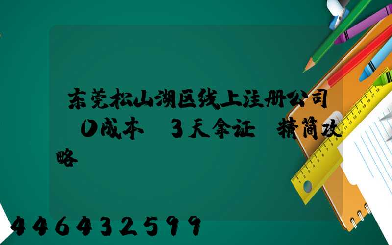 二、东莞松山湖区注册公司代办避坑指南