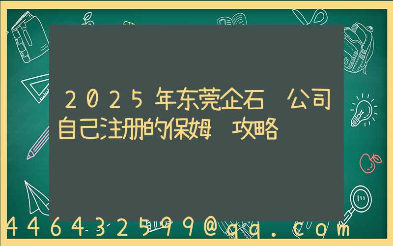 一、东莞企石镇个人注册公司全流程